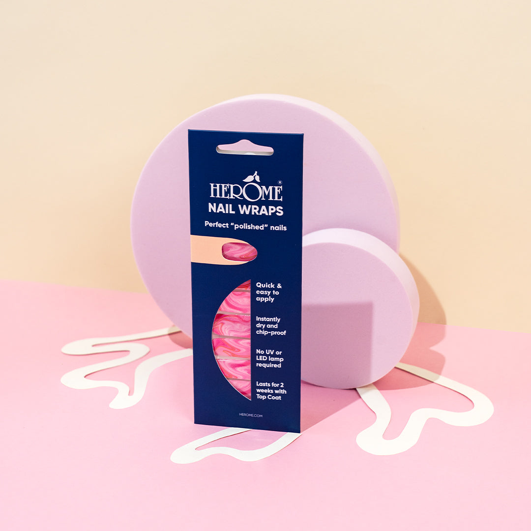 Gebruik om de nagel te beschermen een nagelolie, zoals de Herome Nourishing Nail Oil, om de Nail Wraps te verwijderen. Smeer de olie over de Wraps en peuter de onderkant, aan de nagelriemkant los. Zodra je deze een stukje omhoog haalt en hieronder weer wat olie smeert, kun je de Nail Wrap en eventuele achtergebleven sticker-resten gemakkelijk verwijderen. Nieuwe stickers of lak aanbrengen? Ontvet de nagels voor een betere hechting met de Herome Caring Nail Polish Remover.